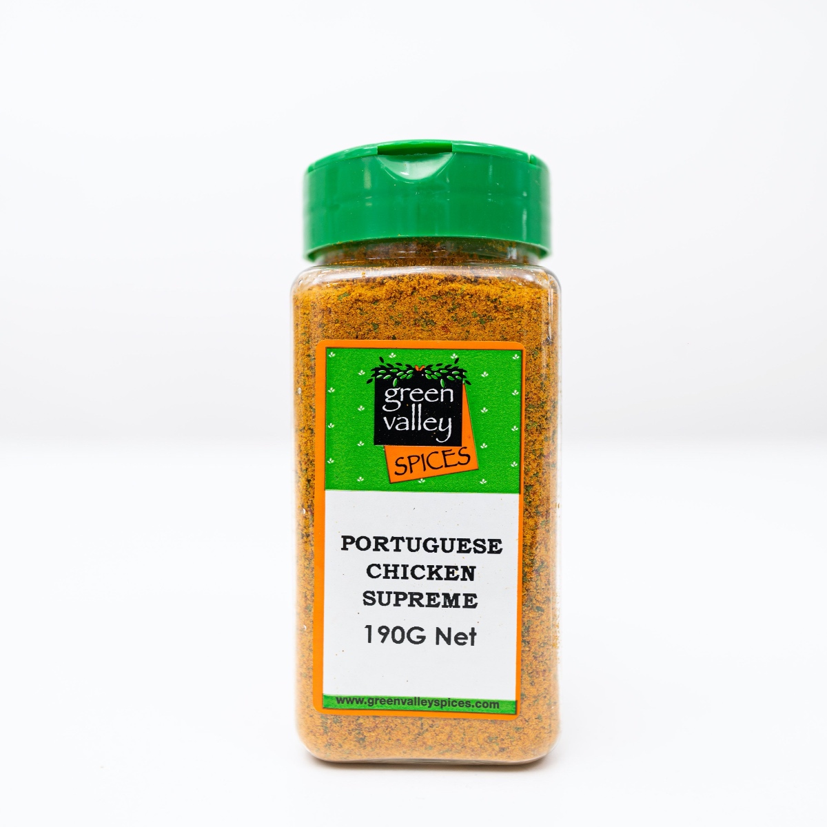 Portuguese Chicken Supreme is a slightly spicey seasoning that is great on sautéed or bbq chicken.